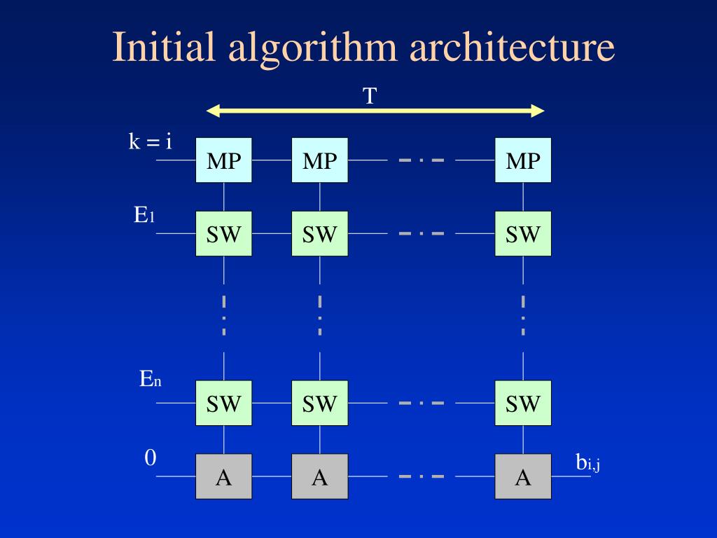 T k = i MP MP MP E1 SW SW SW En SW SW SW 0 bi,j A A A Initial algorithm architecture