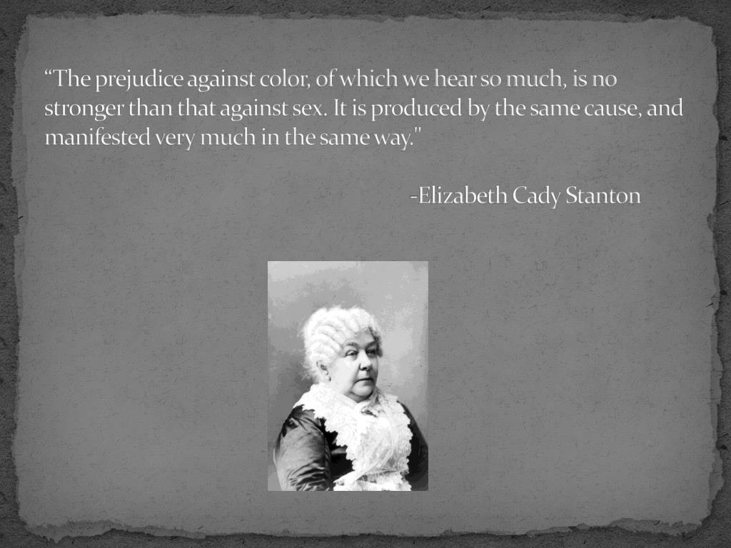 “The prejudice against color, of which we hear so much, is no stronger than that against sex. It is produced by the same cause, and manifested very much in the same way." -Elizabeth Cady Stanton