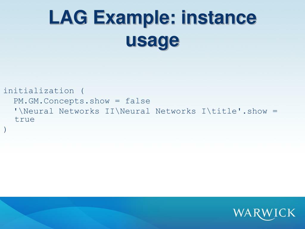 LAG Example: instance usage initialization ( PM.GM.Concepts.show = false '\Neural Networks II\Neural Networks I\title'.show = true )