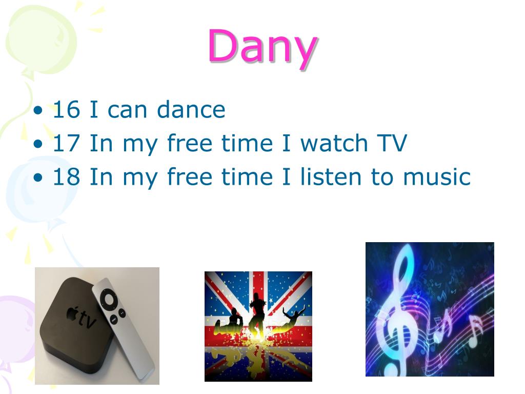 Dany • 16 I can dance • 17 In my free time I watch TV • 18 In my free time I listen to music