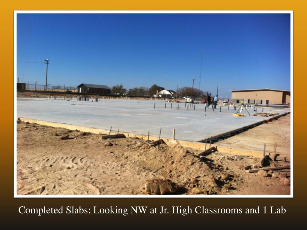 Completed Slabs: Looking NW at Jr. High Classrooms and 1 Lab