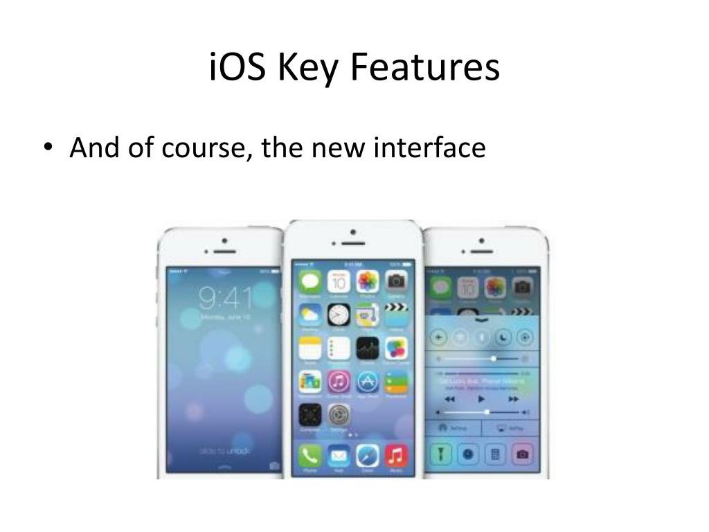iOS 7 Key Features • Touch ID • Siri Enhancements • Control Center • Left Swipe
