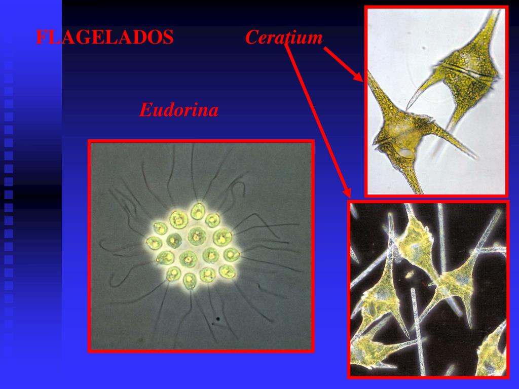 FLAGELADOS Ceratium Eudorina . Euglenophytas hinchada con materia orgánica. ALGAS QUE OBSTRUYEN FILTROS.