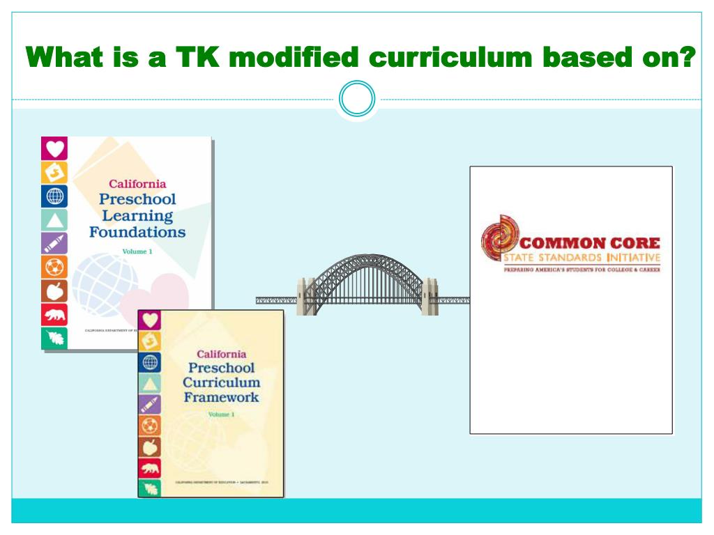 More specifics about TK • It is the first year of a two year kindergarten program. • It follows the full day schedule of Traditional kindergarten. • It is based on the California Kindergarten Common Core State Standards and California Content Standards. • It provides a modified kindergarten curriculum that is both age and developmentally appropriate.
