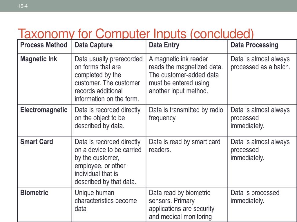 data Capture and user Input Design. Data Capture. Taxonomy for Computer Inputs (continued). Taxonomy for Computer Inputs (concluded). Input Design Guidelines. Capture data as close to its source as possible Capture only variable data. Not data that can be looked up.
