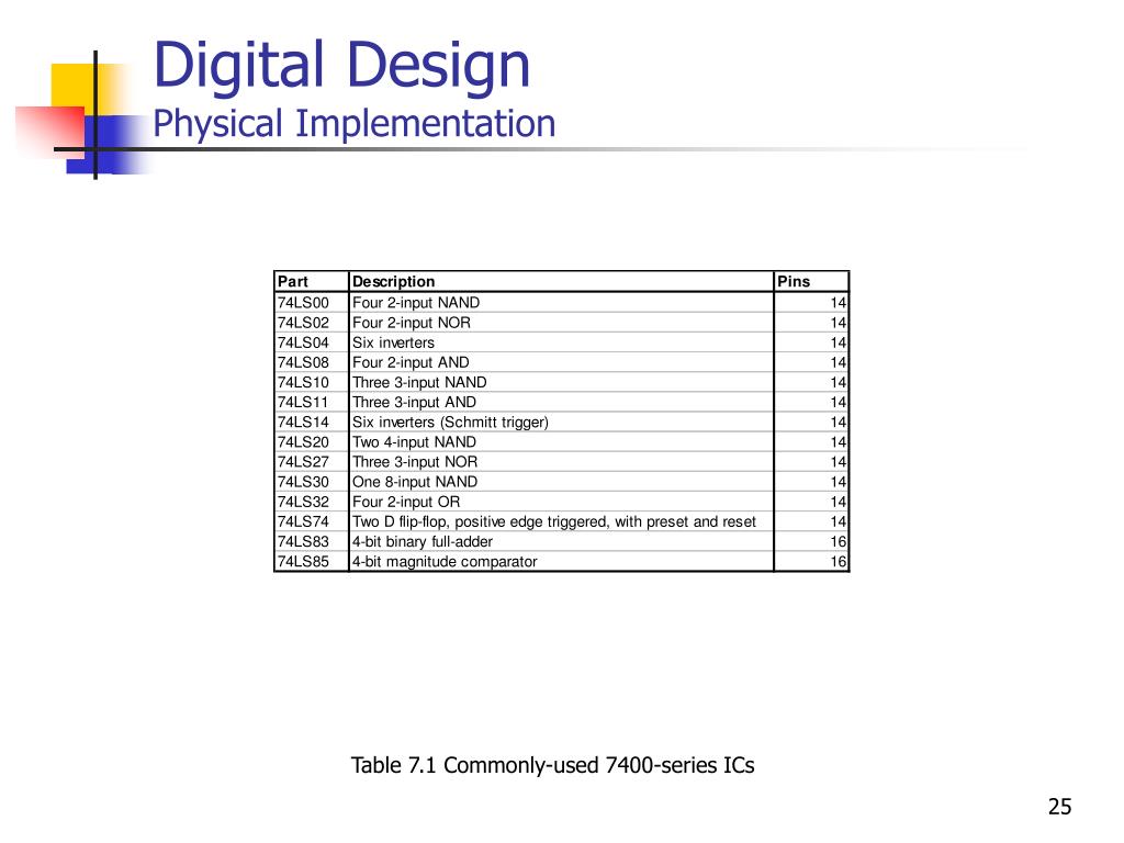 Digital DesignPhysical Implementation Table 7.1 Commonly-used 7400-series ICs
