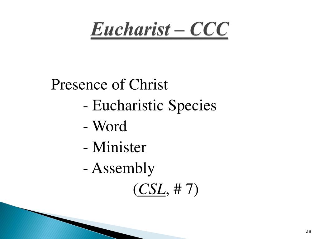 Eucharist – CCC Presence of Christ - Eucharistic Species - Word - Minister - Assembly (CSL, # 7)