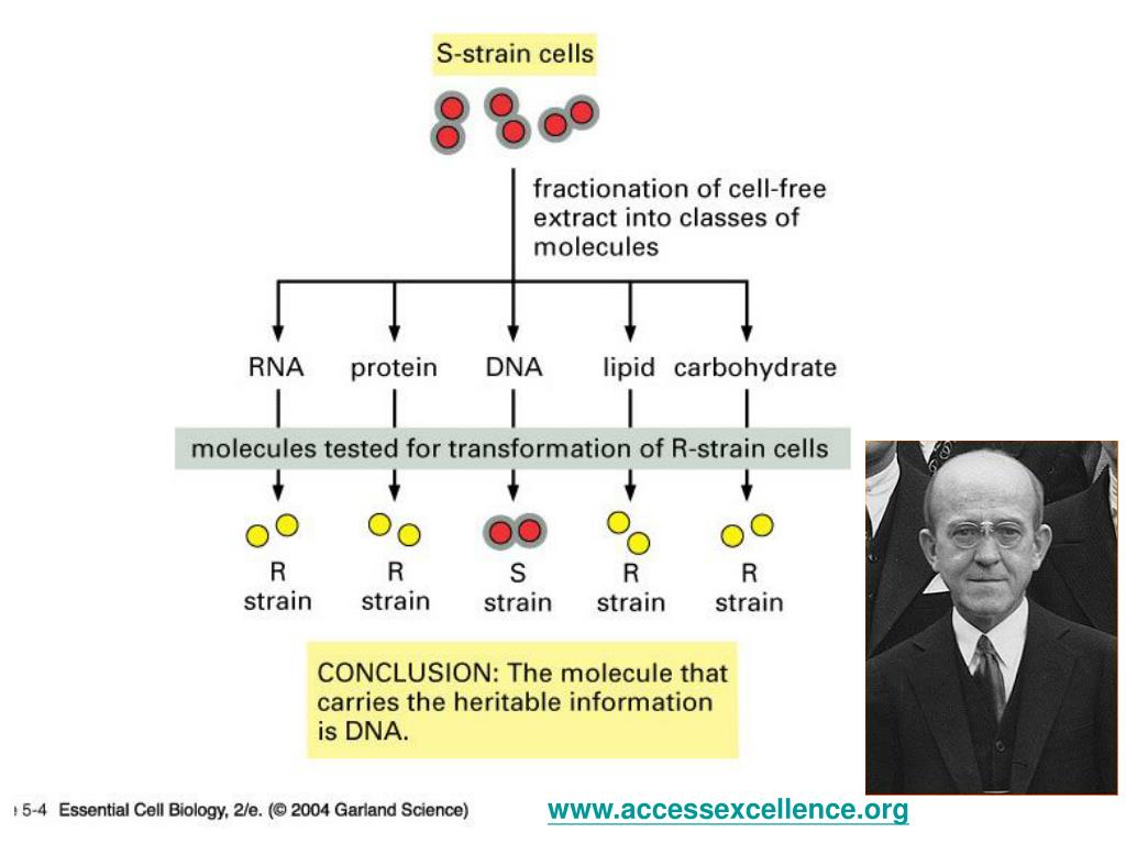 遺傳物質 DNA 的發現 1928 格里夫茲 (Griffith) 肺炎雙球菌轉形試驗 1942 艾佛瑞 (Avery) 研究格里夫茲轉形的物質為何 ? 1952 赫希 - 卻斯 (Hershey-Chase) 以放射線標示噬菌體的蛋白質( S 35 )和 DNA ( P 32 ),感染大腸桿菌的實驗 1953 華生與克立克 (Watson 、 Crick) 發現 DNA 雙螺旋結構. 參考資料: http://fig.cox.miami.edu/~cmallery/150/gene/sf11x1b.jpg.