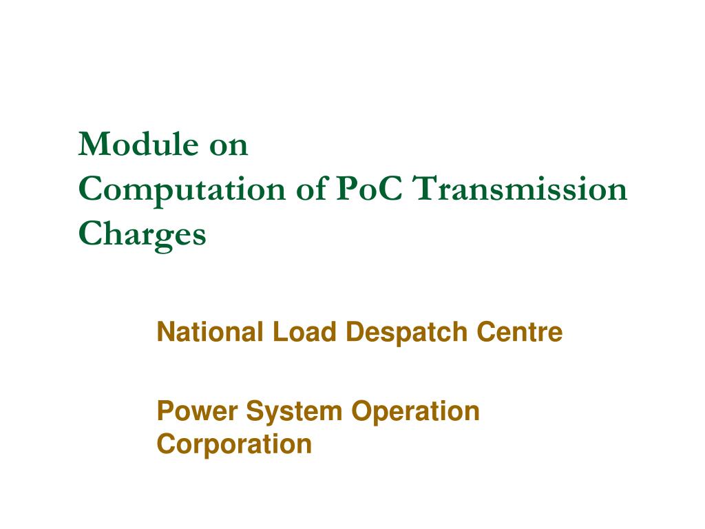 Module on Computation of PoC Transmission Charges National Load Despatch Centre Power System Operation Corporation