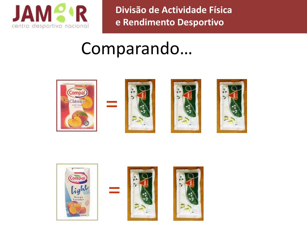 Divisão de Actividade Física e Rendimento Desportivo Comparando… = Adoçantes artificiais Aditivos 0 =