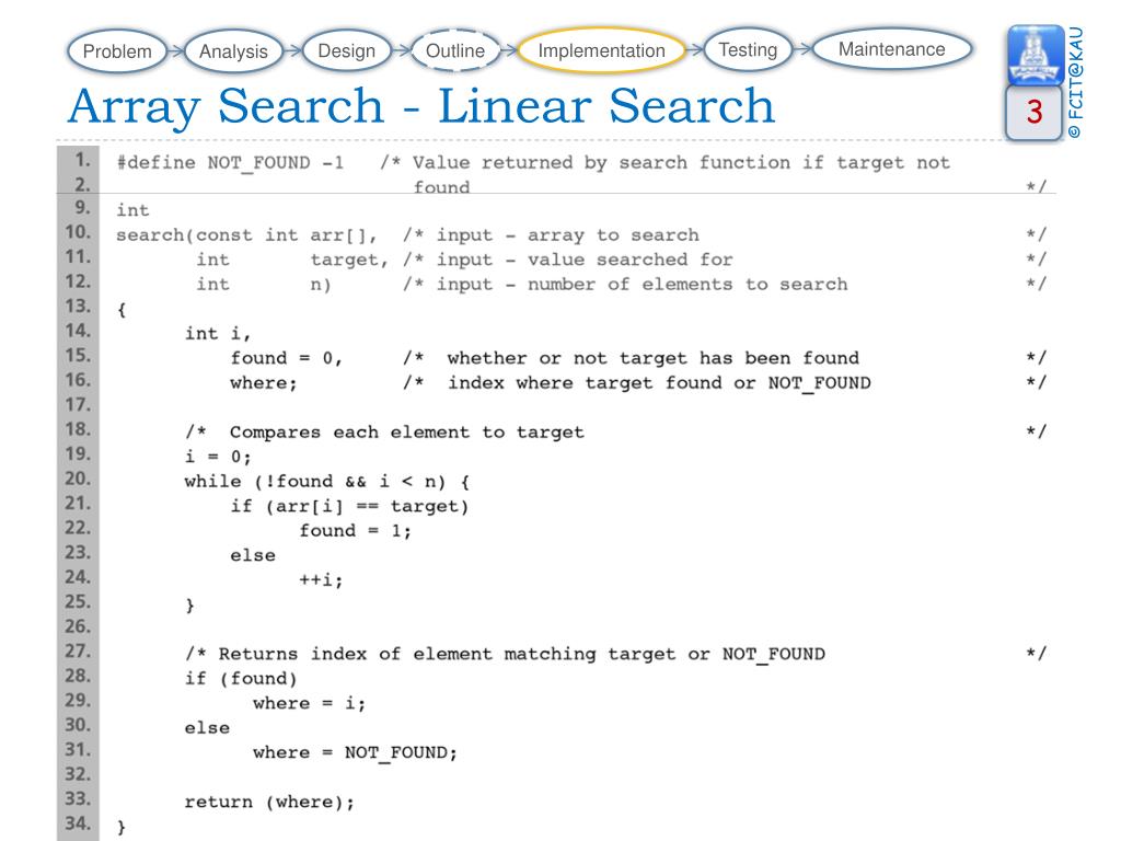 Array Search - Linear Search Implementation Testing Maintenance Problem Analysis Design Outline 3