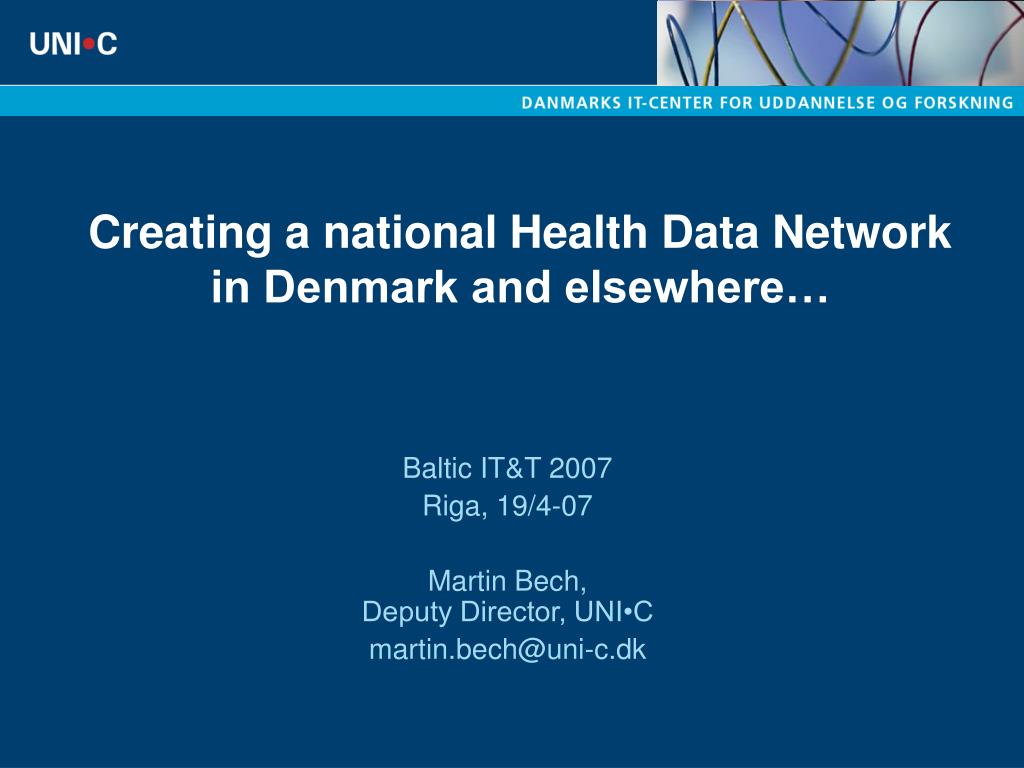 Creating a national Health Data Networkin Denmark and elsewhere… Baltic IT&T 2007 Riga, 19/4-07 Martin Bech, Deputy Director, UNI•C martin.bech@uni-c.dk