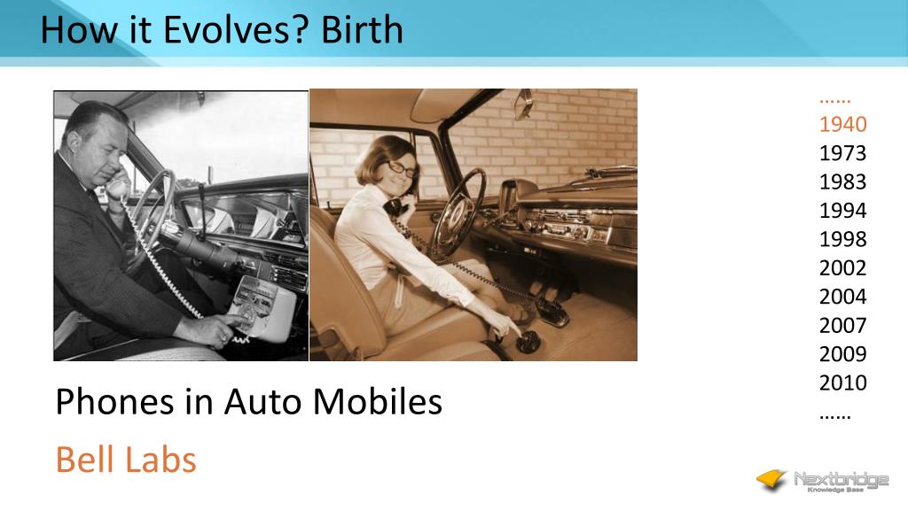 How it Evolves? Birth • Phones in Auto Mobiles • Bell Labs …… 1940 1973 1983 1994 1998 2002 2004 2007 2009 2010 ……