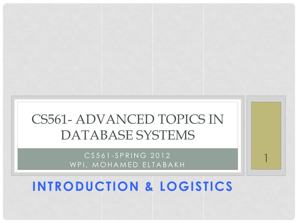 CS561- Advanced topics in database systems. CS561-Spring 2012 WPI, Mohamed eltabakh. Introduction & Logistics. History of dbms. Database systems have evolved since 70s to replace the file system w.r.t storing and querying the data. DBMS. File system. Why dbms ???.
