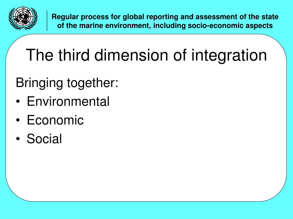 The third dimension of integration Bringing together: • Environmental • Economic • Social