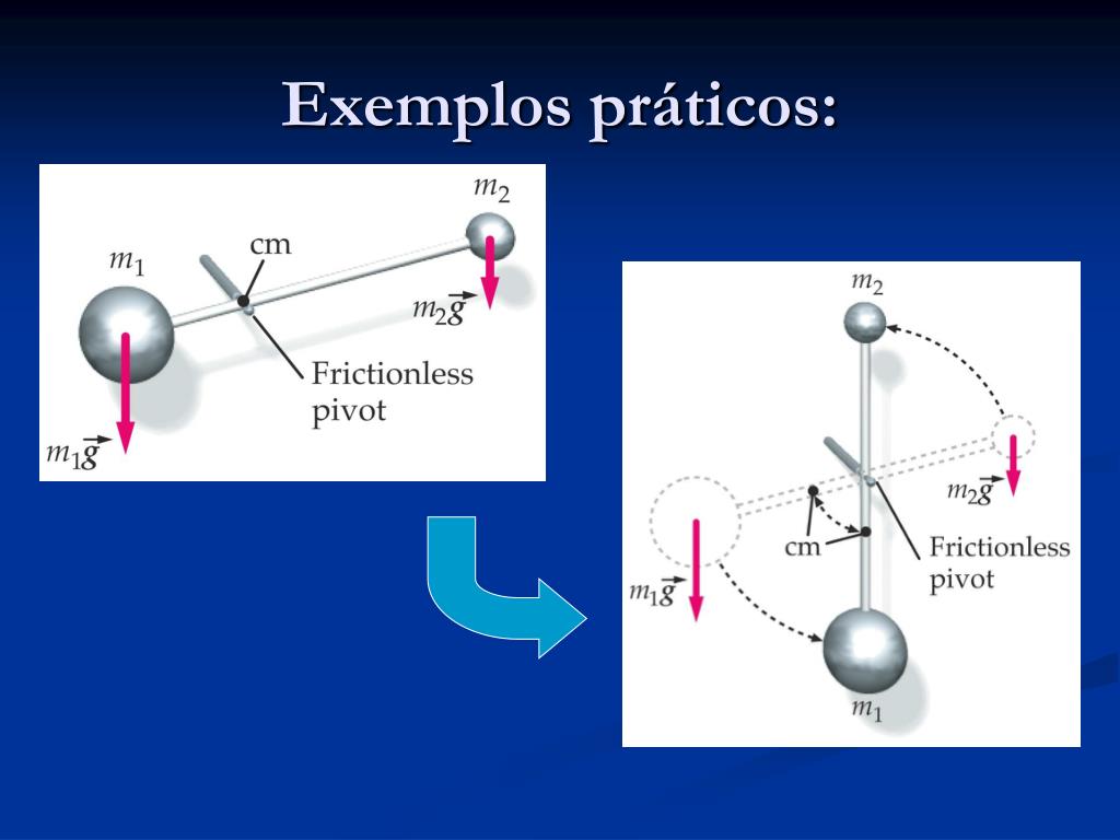 Conclusão: • O CM de um sistema se move como uma partícula de massa M =Si mi, sob influência das forças externas atuando no sistema!