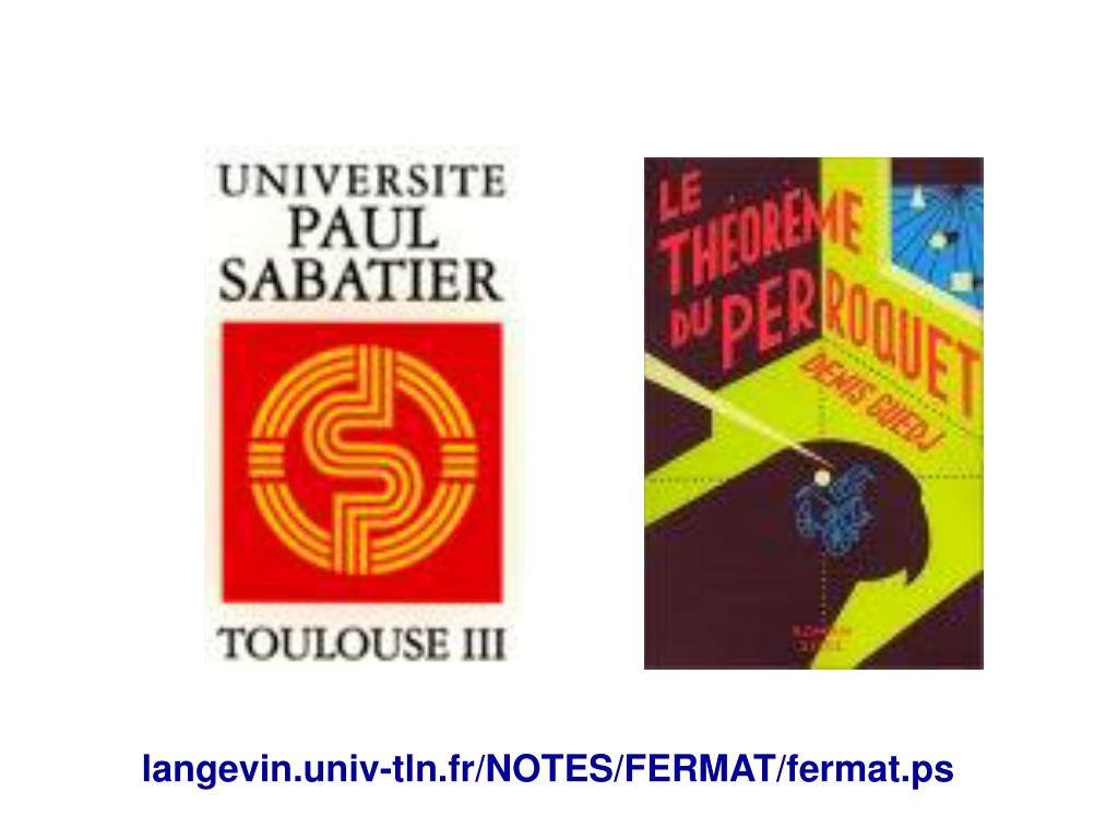 préhistoire Le dernier théorème de Fermat récréations mathématiques du 1er Octobre 2004