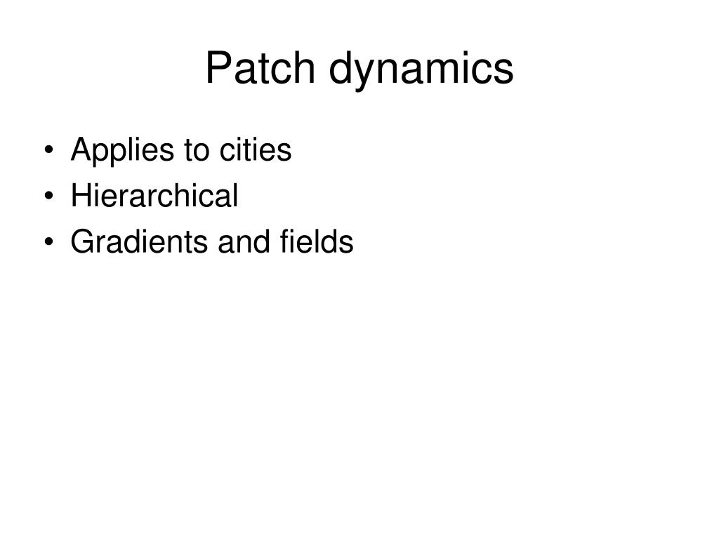 Patch dynamics • Applies to cities • Hierarchical • Gradients and fields
