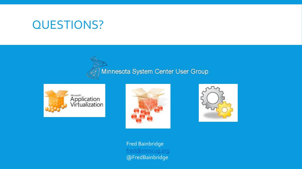 Questions? Fred Bainbridge fred@mnscug.org @FredBainbridge