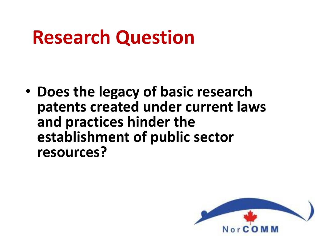 Research Question Does the legacy ofbasic research patents created under current laws and practices hinder the establishment of public sector resources?