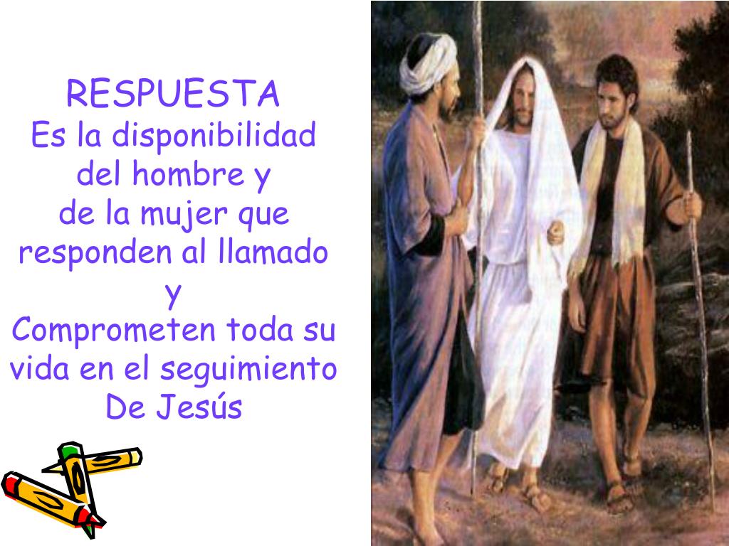 RESPUESTA Es la disponibilidad del hombre y de la mujer que responden al llamado y Comprometen toda su vida en el seguimiento De Jesús
