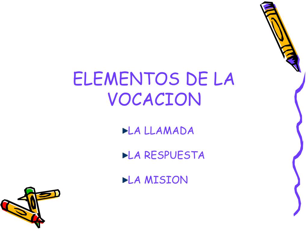 ELEMENTOS DE LA VOCACION • LA LLAMADA • LA RESPUESTA • LA MISION