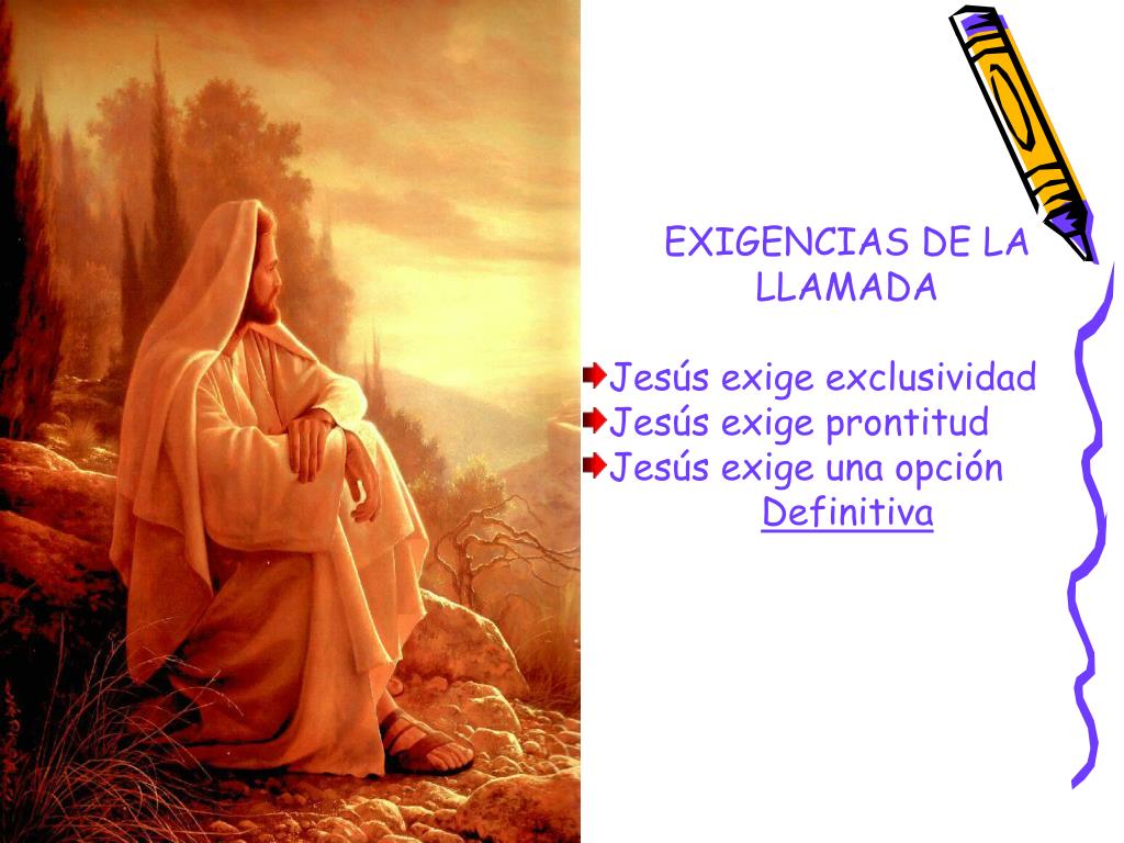 EXIGENCIAS DE LA LLAMADA • Jesús exige exclusividad • Jesús exige prontitud • Jesús exige una opción • Definitiva