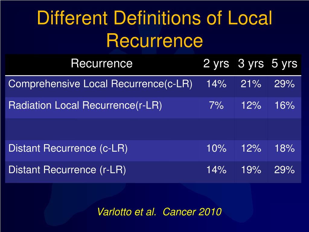 Different Definitions of Local Recurrence Varlotto et al. Cancer 2010