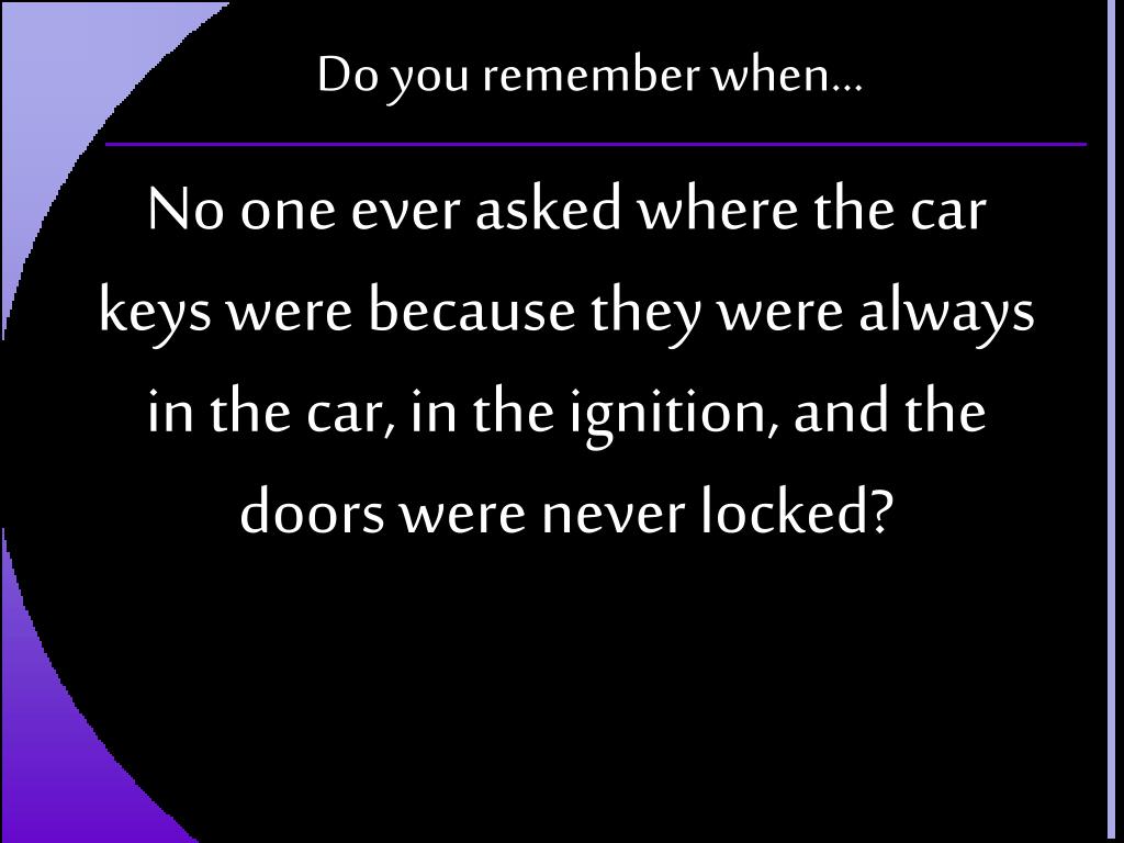 Do you remember when… No one ever asked where the car keys were because they were always in the car, in the ignition, and the doors were never locked?