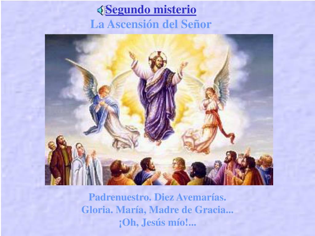 Segundo misterio La Ascensión del Señor Padrenuestro. Diez Avemarías. Gloria.María, Madre de Gracia... ¡Oh, Jesús mío!...