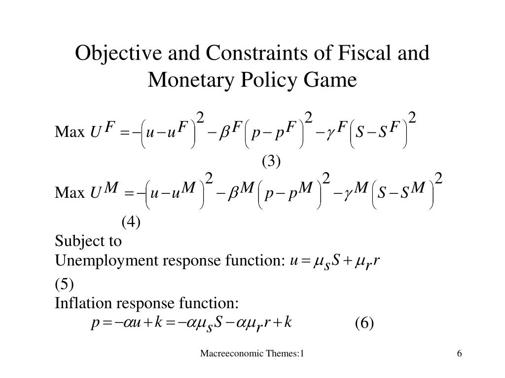 Objective and Constraints of Fiscal and Monetary Policy Game Macreeconomic Themes:1