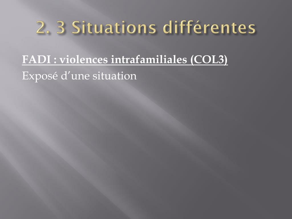 2. 3 Situations différentes FADI : violences intrafamiliales (COL3) Exposé d’une situation