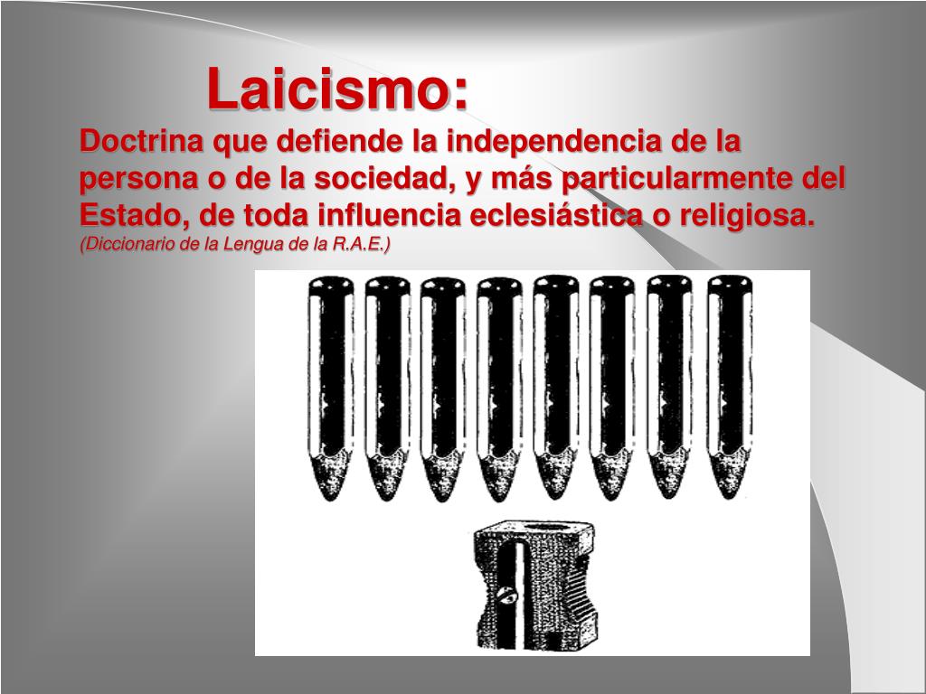 Laicismo:Doctrina que defiende la independencia de la persona o de la sociedad, y más particularmente del Estado, de toda influencia eclesiástica o religiosa.(Diccionario de la Lengua de la R.A.E.)