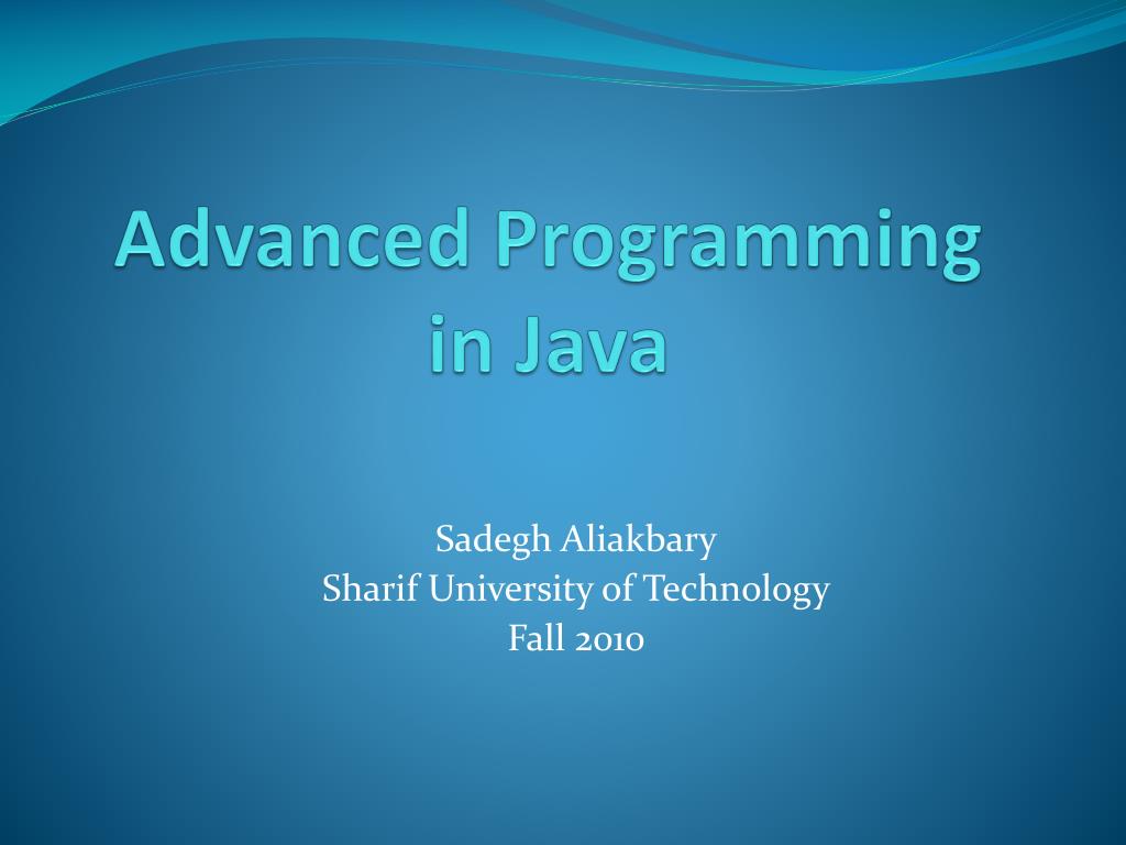 Advanced Programming in Java. Sadegh Aliakbary Sharif University of Technology Fall 2010. Agenda. Introduction to Course Java History Java Characteristics First Example Syllabus Evaluation Policy. This Course Covers:. Java programming language Object Oriented Concepts