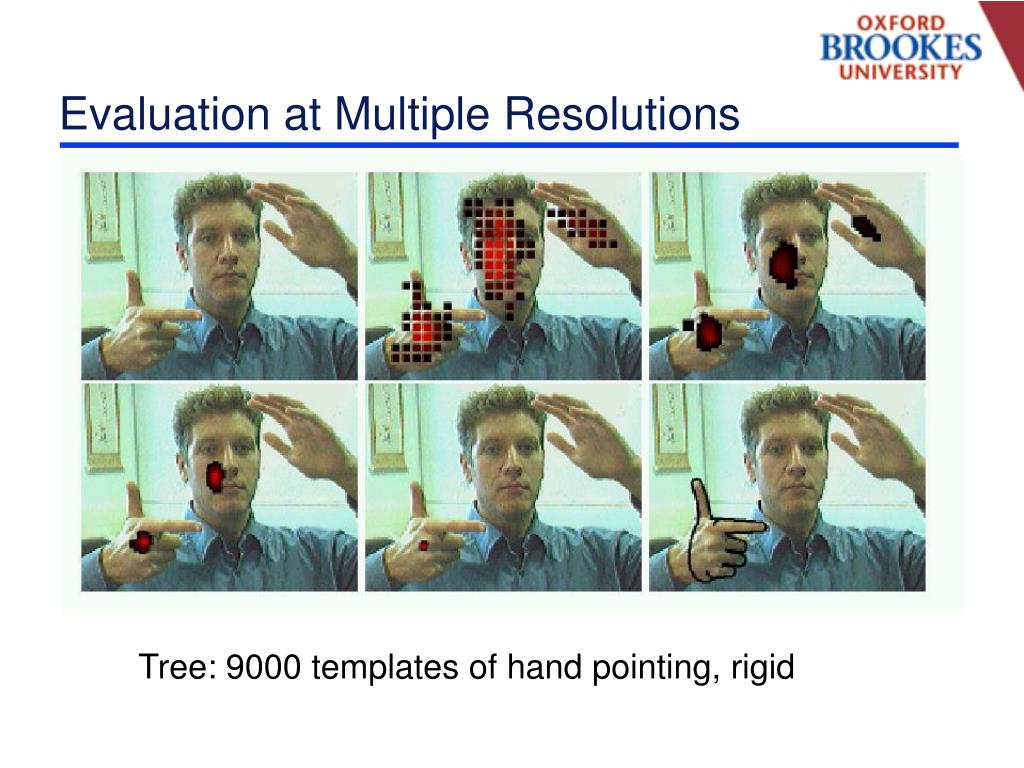 Evaluation at Multiple Resolutions • Tree: 9000 templates of hand pointing, rigid