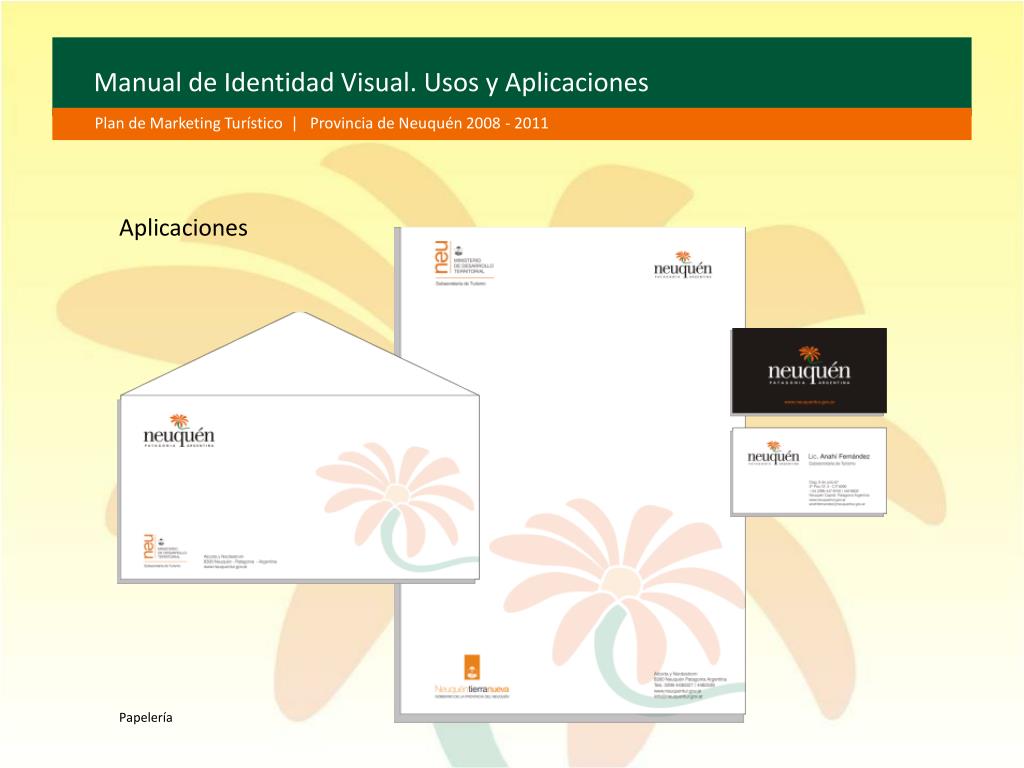 Manual de Identidad Visual. Usos y Aplicaciones Plan de Marketing Turístico | Provincia de Neuquén 2008 - 2011 Aplicaciones Papelería