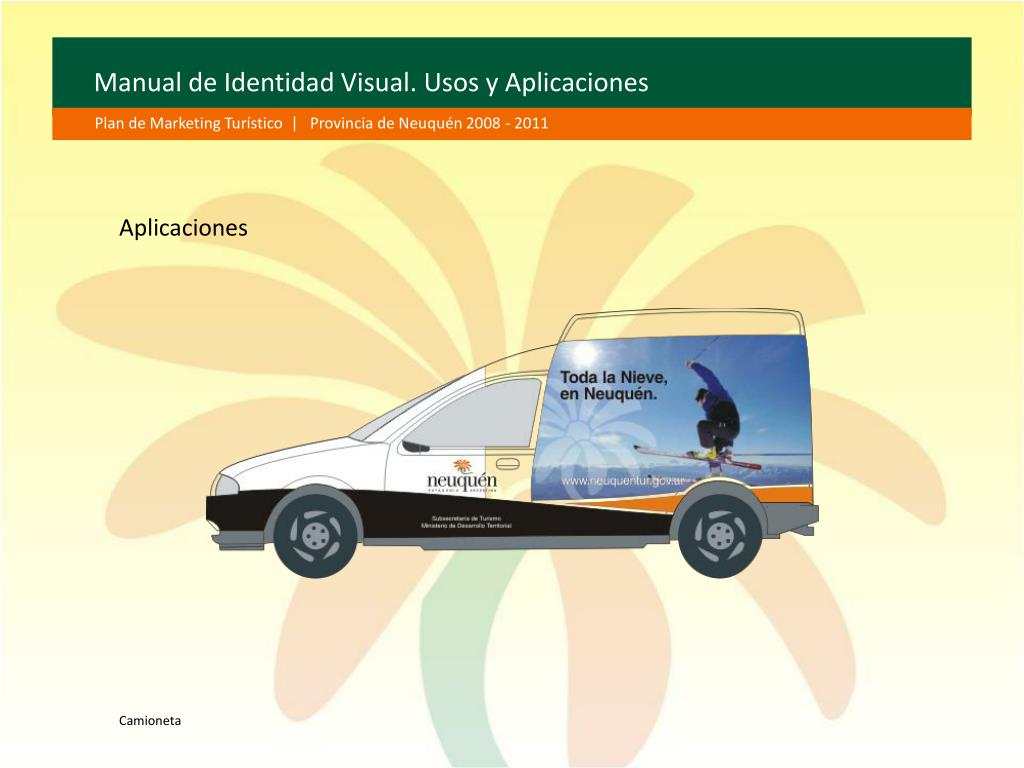Manual de Identidad Visual. Usos y Aplicaciones Plan de Marketing Turístico | Provincia de Neuquén 2008 - 2011 Aplicaciones Camioneta