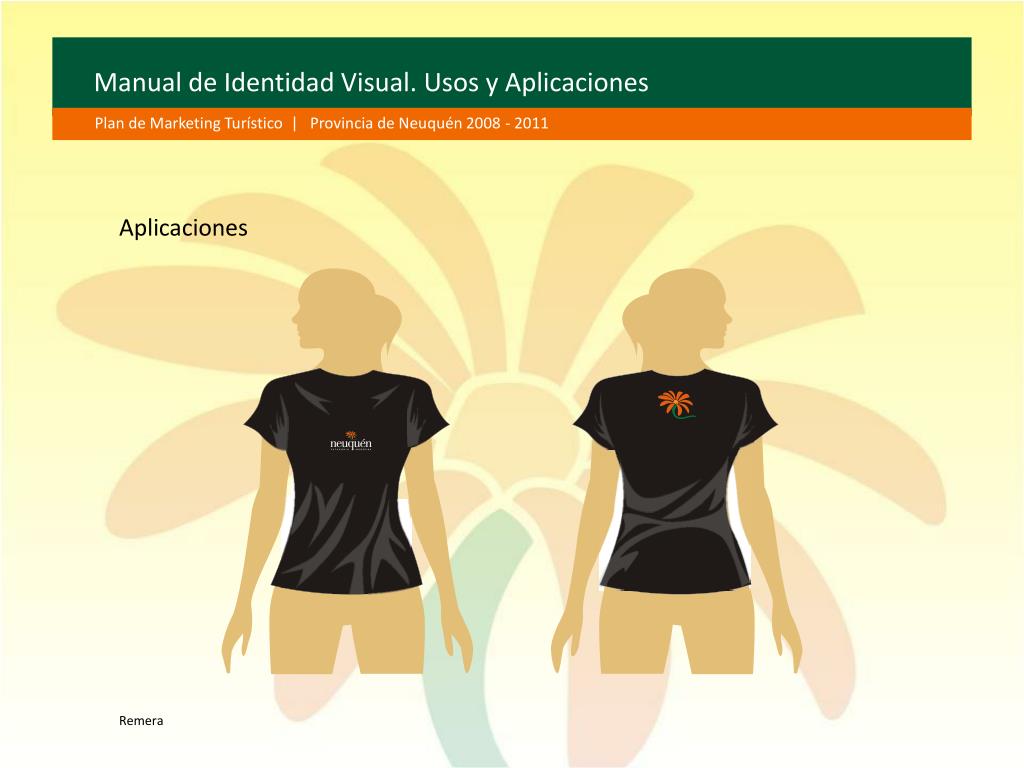 Manual de Identidad Visual. Usos y Aplicaciones Plan de Marketing Turístico | Provincia de Neuquén 2008 - 2011 Aplicaciones Remera