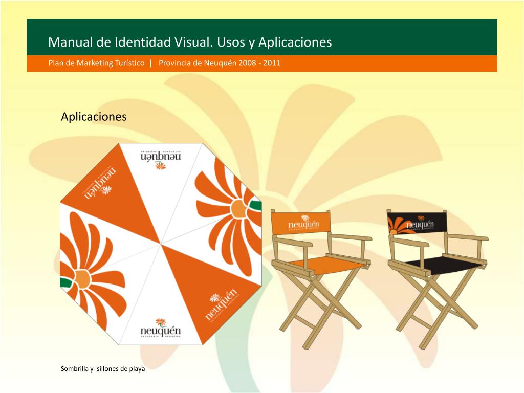 Manual de Identidad Visual. Usos y Aplicaciones Plan de Marketing Turístico | Provincia de Neuquén 2008 - 2011 Aplicaciones Sombrilla y sillones de playa