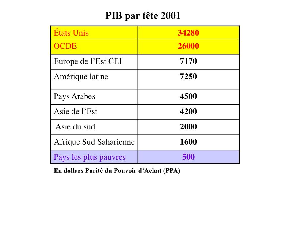 PIBpar tête2001 En dollars Parité du Pouvoir d’Achat (PPA)