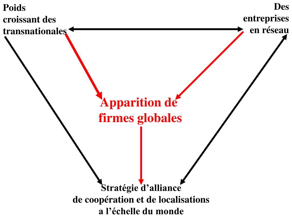 Des entreprises en réseau Poids croissant des transnationales Apparition de firmes globales Stratégie d’alliance de coopération et de localisations a l’échelle du monde
