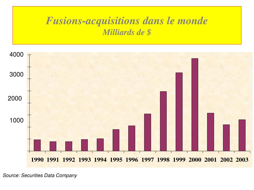 Fusions-acquisitions dans le mondeMilliardsde $ 4000 3000 2000 1000 Source: Securities Data Company