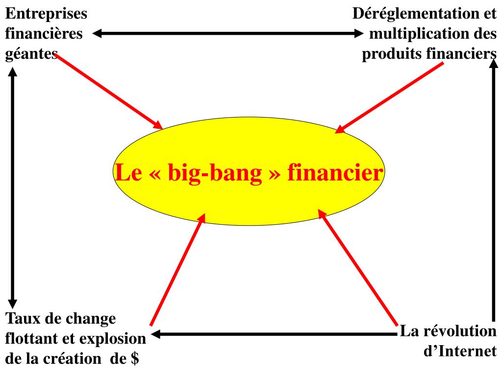 Entreprises financières géantes Déréglementation et multiplication des produits financiers Le « big-bang » financier Le « Big Bang » financier Taux de change flottantet explosion de la création de $ La révolution d’Internet