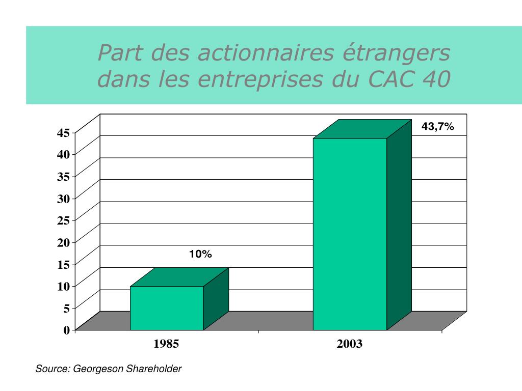 Part des actionnaires étrangers dans les entreprises du CAC 40 Source: Georgeson Shareholder