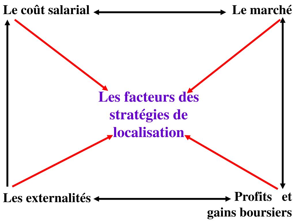 Le coût salarial Le marché Les facteurs des stratégies de localisation Profits et gains boursiers Les externalités