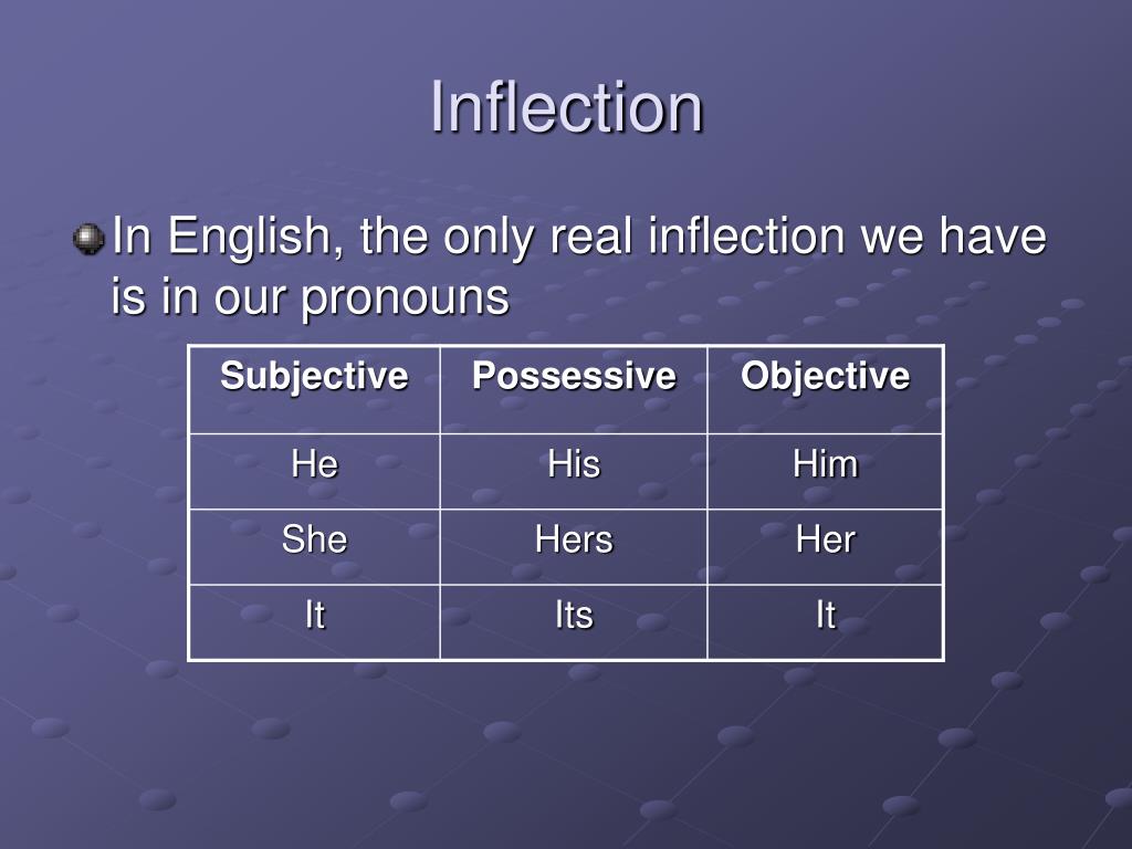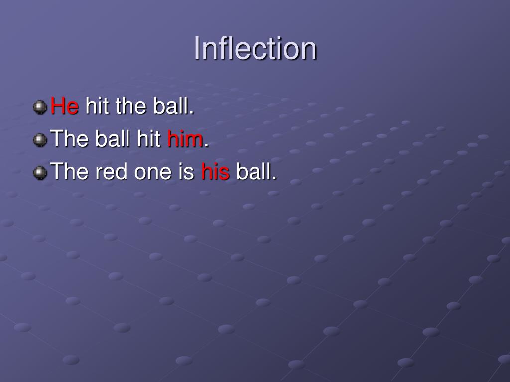 Inflection • He hit the ball. • The ball hit him. • The red one is his ball.