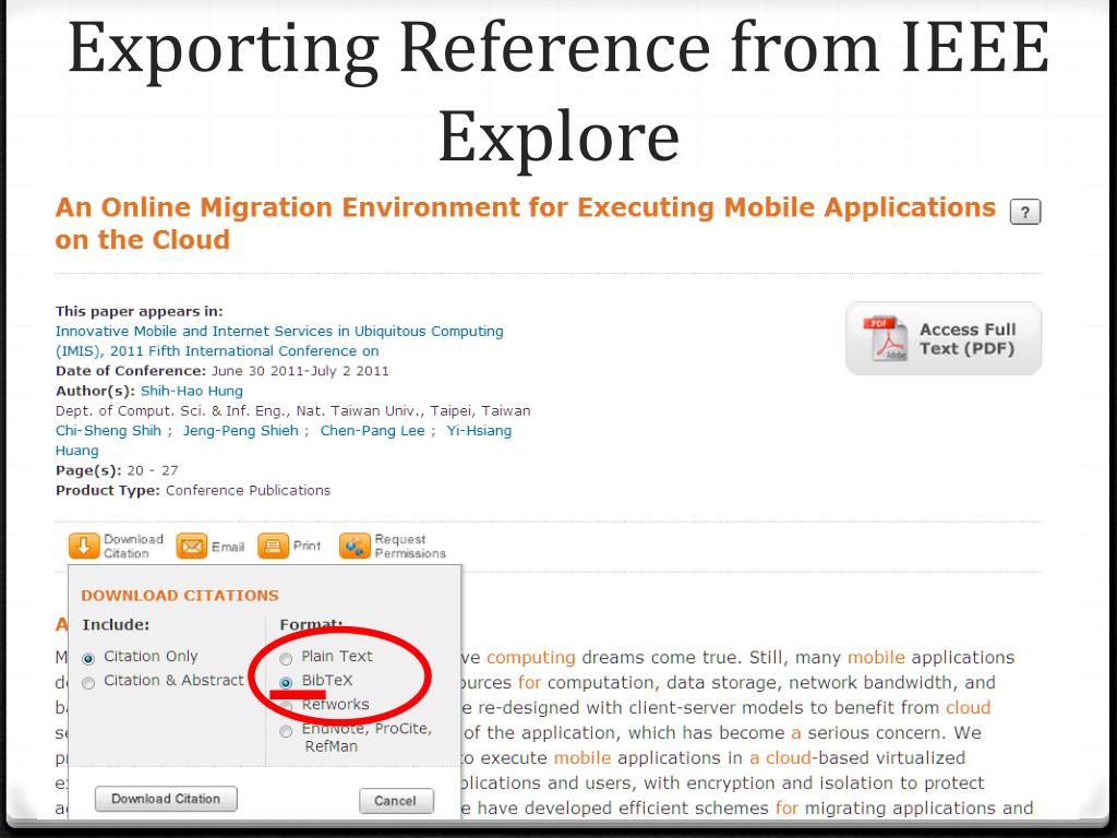Exporting Reference from IEEE Explore • Select BibTex Source, remove previous text and paste your text here.