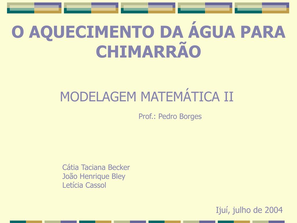 O AQUECIMENTO DA ÁGUA PARA CHIMARRÃO MODELAGEM MATEMÁTICA II Prof.: Pedro Borges Cátia Taciana Becker João Henrique Bley Letícia Cassol Ijuí, julho de 2004