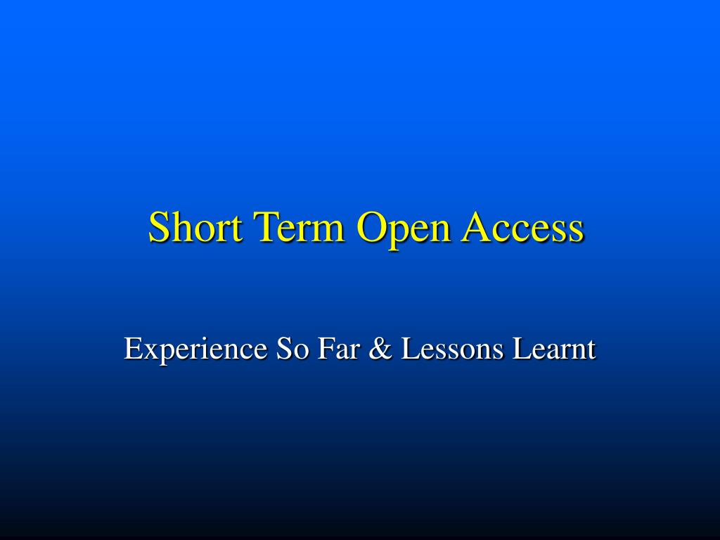 Short Term Open Access Experience So Far & Lessons Learnt