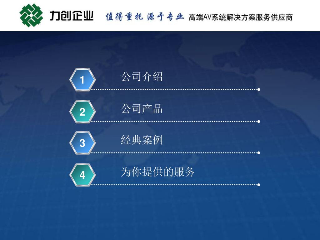 公司介绍 1 公司产品 2 经典案例 3 为你提供的服务 4